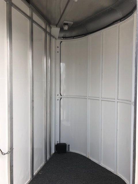 Super nice, lightly used 2010 Merhow 3 horse bumper pull trailer. This trailer is in fabulous condition! It is 7′ tall, 6’9″ wide and 17′ long. It has the following features: -3 horse slant load floor plan -Drop down windows at head side with bars -Sliding windows on hip side -Escape door from 1st stall -Stud wall divider -Lined and insulated roof -Roof vents per stall -Interior fans -Collapsible rear tack with bridle hooks, brush box, carpeted door and wall -Removable saddle rack -Front dressing room with swing out blanket bars, -Extruded aluminum sides -Factory added rear ramp -Exterior load light -Interior lights -6 exterior tie rings Trailer is in excellent condition